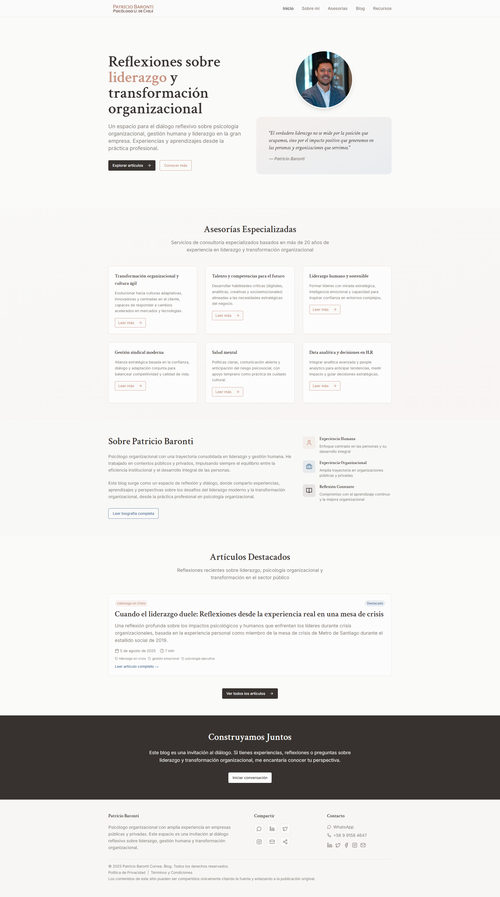 Soy Hugo Baronti Barella, sociólogo, artista integral, desarrollador web y creador de plataformas digitales con un enfoque humano y territorial. Me especializo en la integración de inteligencia artificial, automatización de procesos y agentes inteligentes, así como en el desarrollo web full stack utilizando tecnologías de vanguardia. Trabajo con servidores Linux de configuración personalizada y cuento con amplia experiencia en proyectos culturales, educativos y turísticos. Mi enfoque fusiona creatividad, pensamiento crítico y una visión innovadora, siempre conectada con lo local. Desde la Región del Maule, Chile, diseño soluciones digitales que vinculan personas, conocimientos y territorios, promoviendo impacto y conexión.